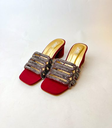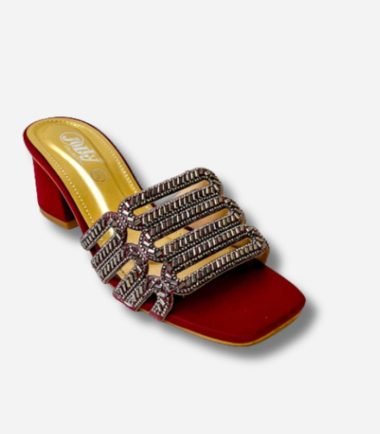 Add a touch of sparkle to your summer wardrobe with these flat open-toe slippers featuring a dazzling upper. Perfect for casual outings or evening chic. These slippers have rounded toe with padded footbed.