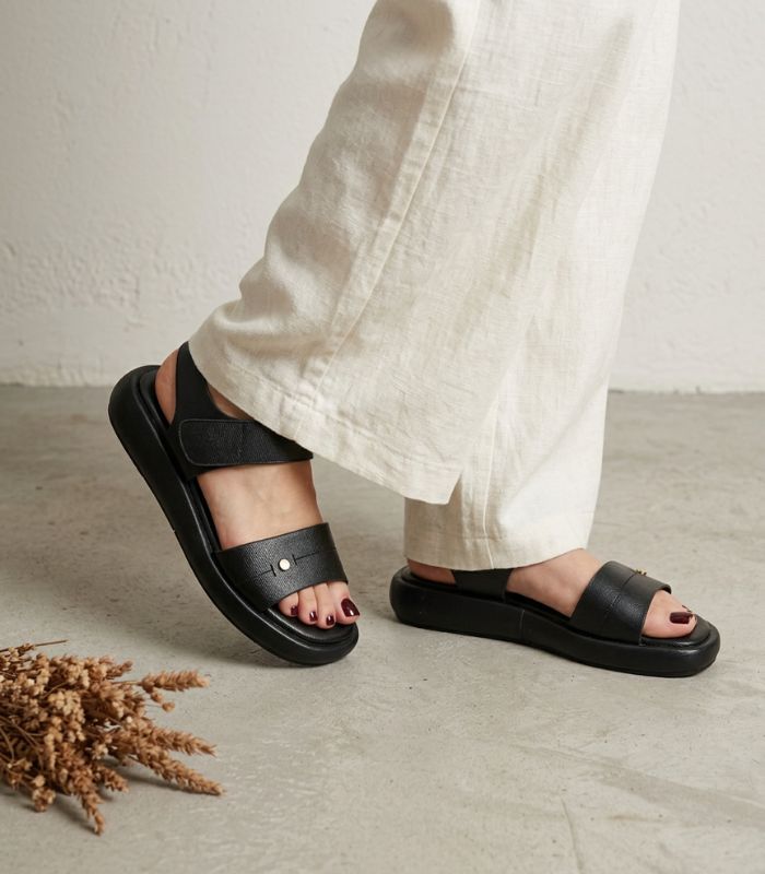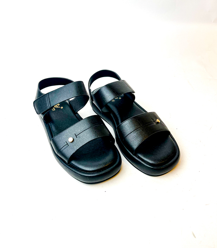 Add a touch of sparkle to your summer wardrobe with these flat open-toe slippers featuring a dazzling upper. Perfect for casual outings or evening chic. These slippers have rounded toe with padded footbed.