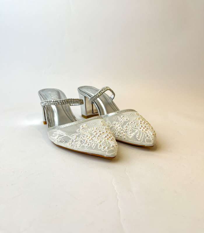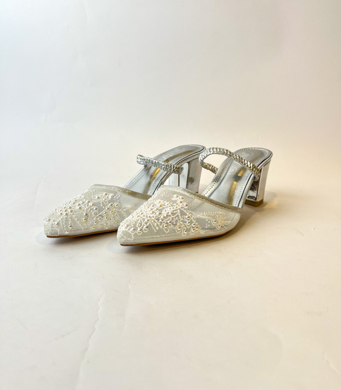 Add a touch of sparkle to your wardrobe with these sandals featuring a dazzling upper. Perfect for casual outings or evening chic. These sandals have rounded toe with padded footbed.