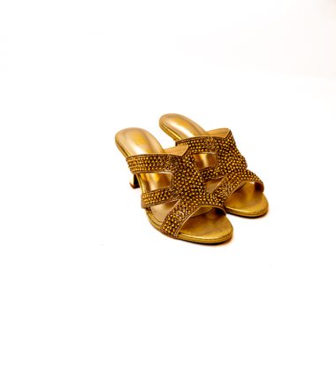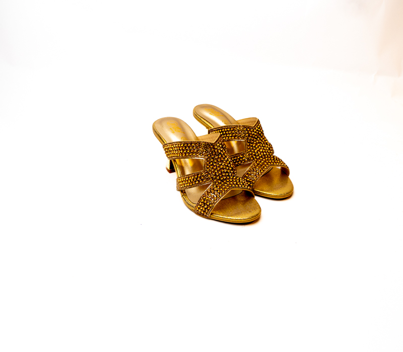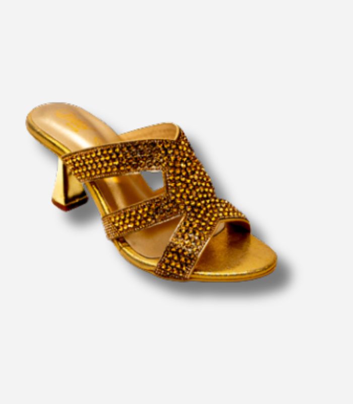 Add a touch of sparkle to your wardrobe with these slippers featuring a dazzling upper. Perfect for casual outings or evening chic. These sandals have rounded toe with padded footbed.