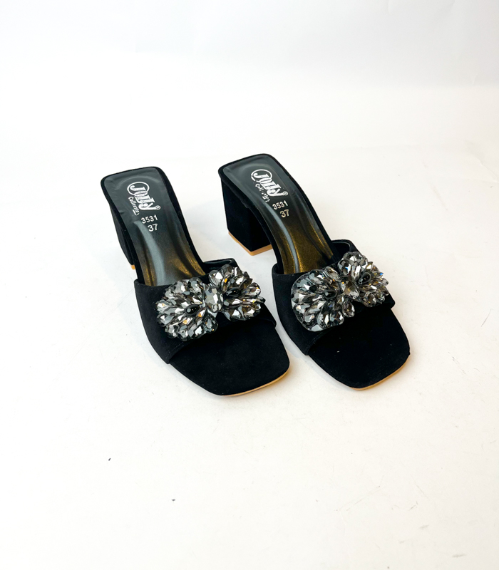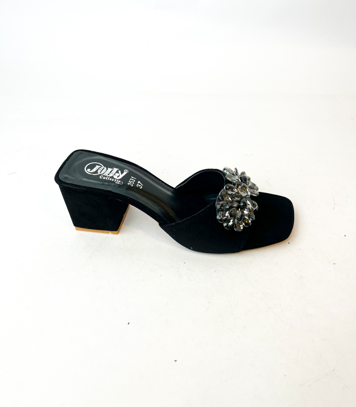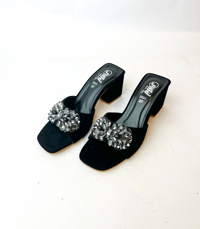 Add a touch of sparkle to your summer wardrobe with these flat open-toe slippers featuring a dazzling upper. Perfect for casual outings or evening chic. These slippers have rounded toe with padded footbed.