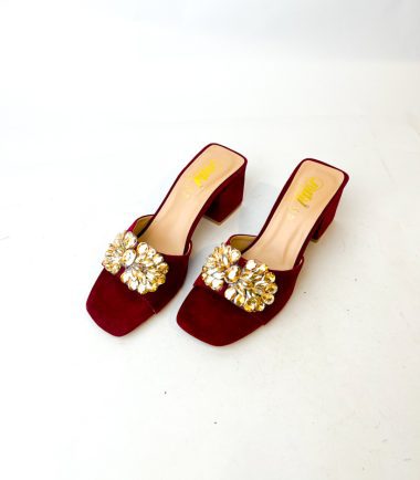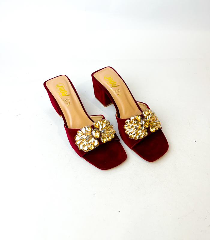 Add a touch of sparkle to your summer wardrobe with these flat open-toe slippers featuring a dazzling upper. Perfect for casual outings or evening chic. These slippers have rounded toe with padded footbed.