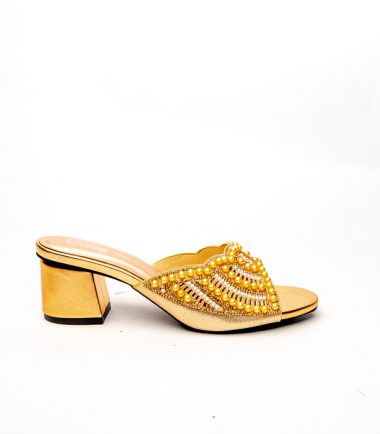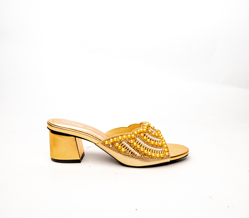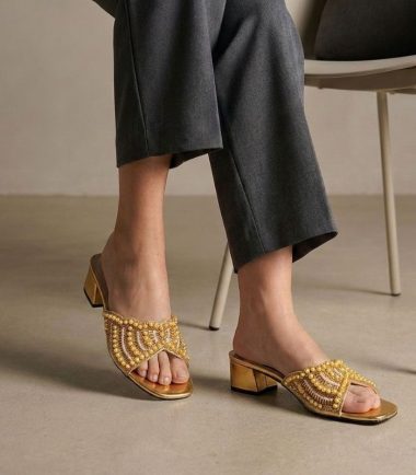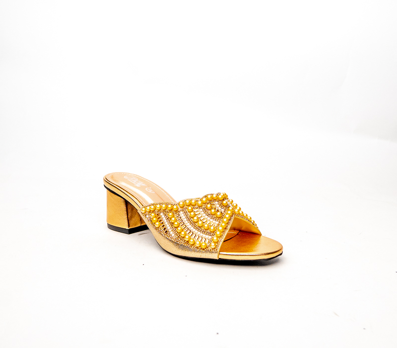 Add a touch of sparkle to your summer wardrobe with these flat open-toe slippers featuring a dazzling upper. Perfect for casual outings or evening chic. These slippers have rounded toe with padded footbed.